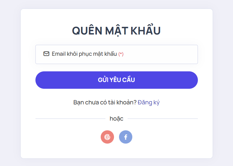 Bước 3: Tại màn hình QUÊN MẬT KHẨU, bạn nhập vào email tài khoản của bạn -> và nhấn "GỬI YÊU CẦU"