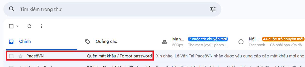 Lưu ý: Trường hợp bạn không nhận được email từ Pace8 bạn vui lòng kiểm tra lại kiểm tra tất cả hộp thư của bạn (bao gồm thư mục spam và quảng cáo).