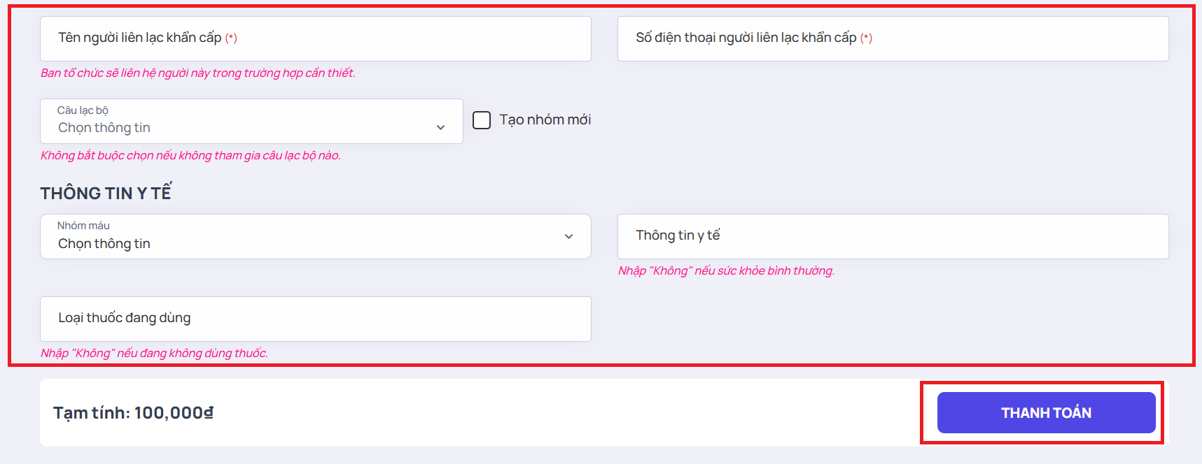 Bước 3: Nhập thông tin đăng ký của người được chuyển nhượng và nhấn "THANH TOÁN"