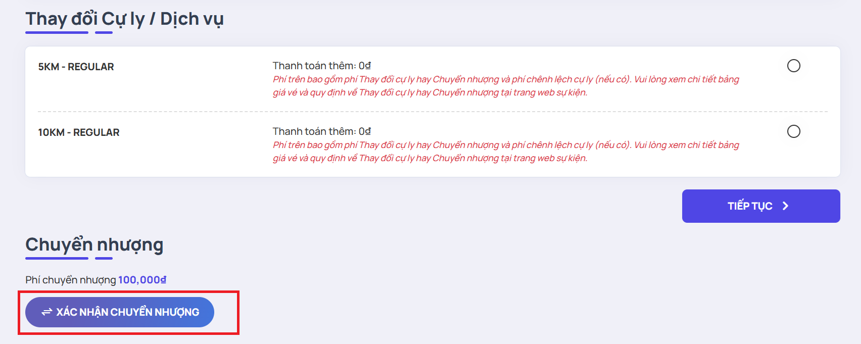Lưu ý: Bạn chỉ có thể chuyển nhượng trong khoảng thời gian cho phép của BTC, chức năng chuyển nhượng sẽ bị ẩn khi hết thời gian.
