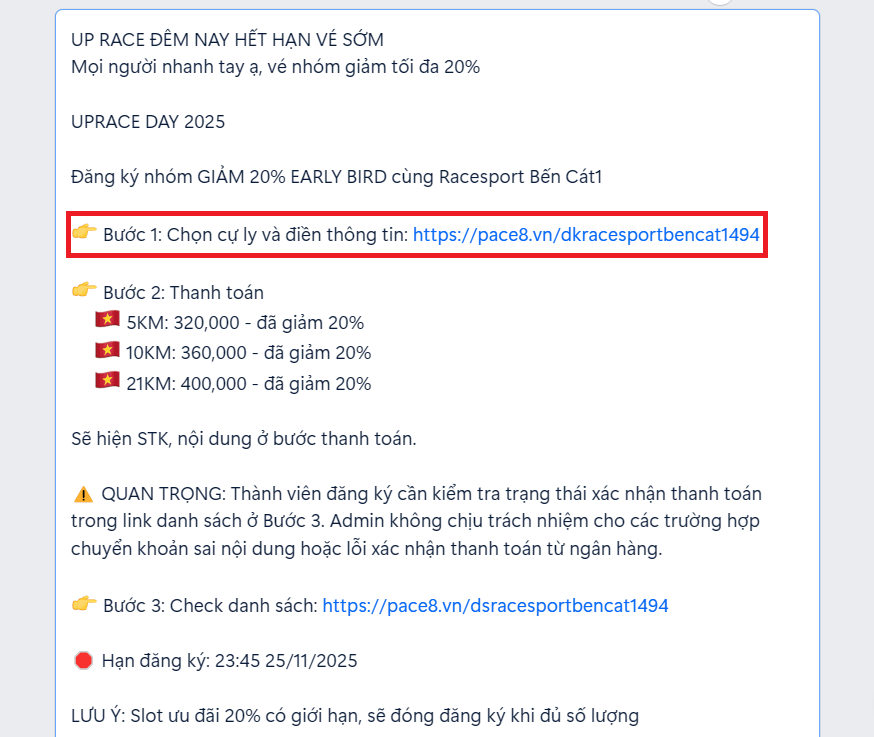 Ví dụ tham khảo về Link đăng ký nhóm của team RaceSport Bến Cát.
