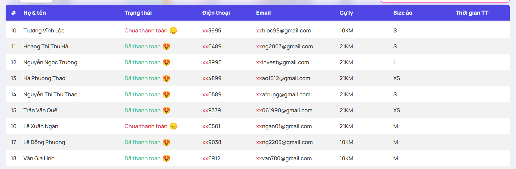 Truy cập link danh sách của trưởng nhóm để xem trạng thái xác nhận thanh toán. Lưu ý, trưởng nhóm sẽ cần chút thời gian để đối soát thanh toán, trong trường hợp quá 24h chưa được xác nhận thanh toán, vui lòng liên hệ trưởng nhóm để được hỗ trợ.