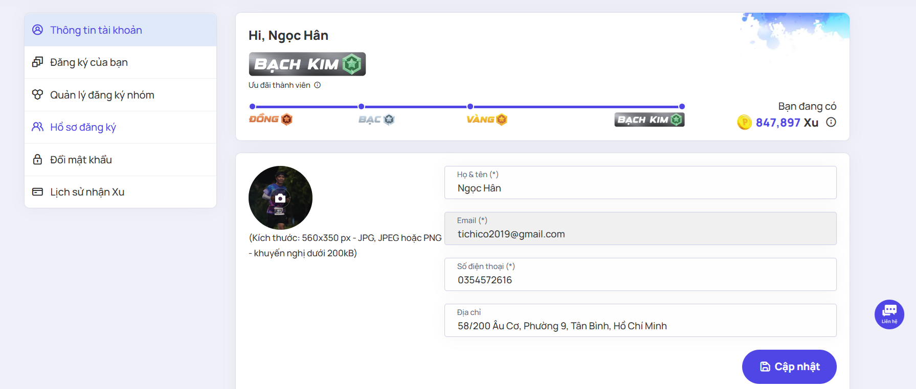 Sau khi đăng ký thành công, hệ thống sẽ tự động đăng nhập vào tài khoản của bạn