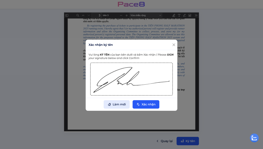 Bước 4: Thực thiện thao tác ký tên ở ô trống và nhấn "Xác nhận", bạn có thể nhấn "Làm mới" để ký làm mới ô ký tên